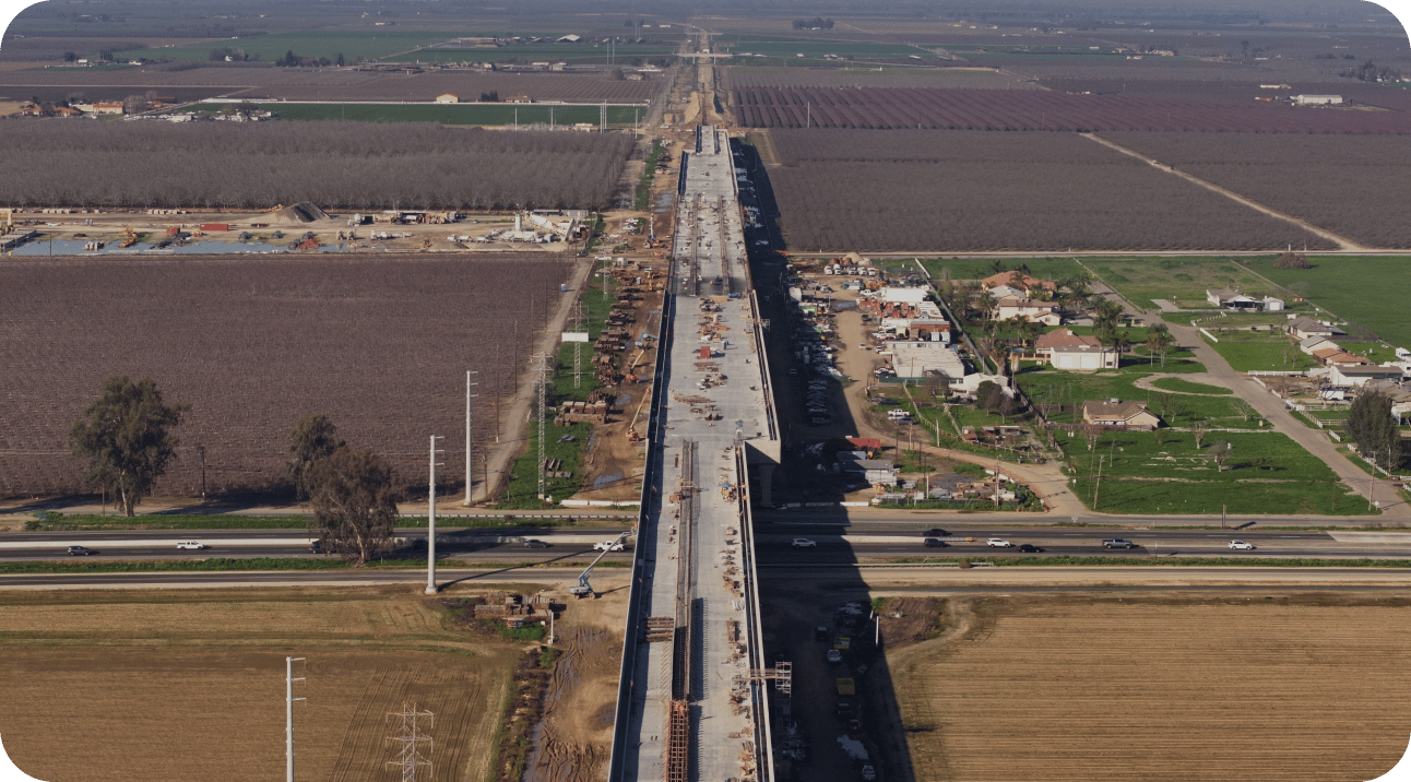 Aerial photo of the Hanford Viaduct, apart of the California High Speed Rail (HSR)